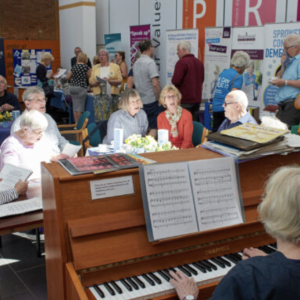 In June we were again part of the NatWest bank’s Dementia Awareness event: a chance to talk to customers about Come Singing and Music Mirrors. We took a keyboard, so there was music (and some singing!) throughout the day!