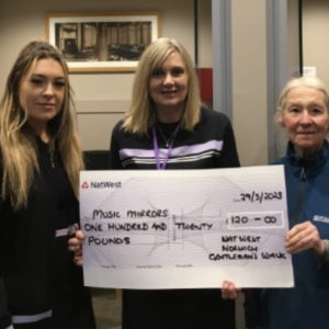 We are so grateful to Norwich NatWest for their support – they always make us very welcome and don’t seem to mind the disruption we cause!